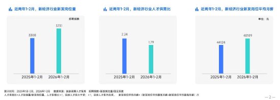脉脉数据显示,2026年1-2月,新经济行业新发岗位量同比增长12.77%,招聘需求明显回温。与此同时,人才供需比从2025年同期的2.24下降至1.79,即从“约2.24人竞争1个岗位”下降至“约1.79人竞争1个岗位”,求职竞争压力有所缓解。